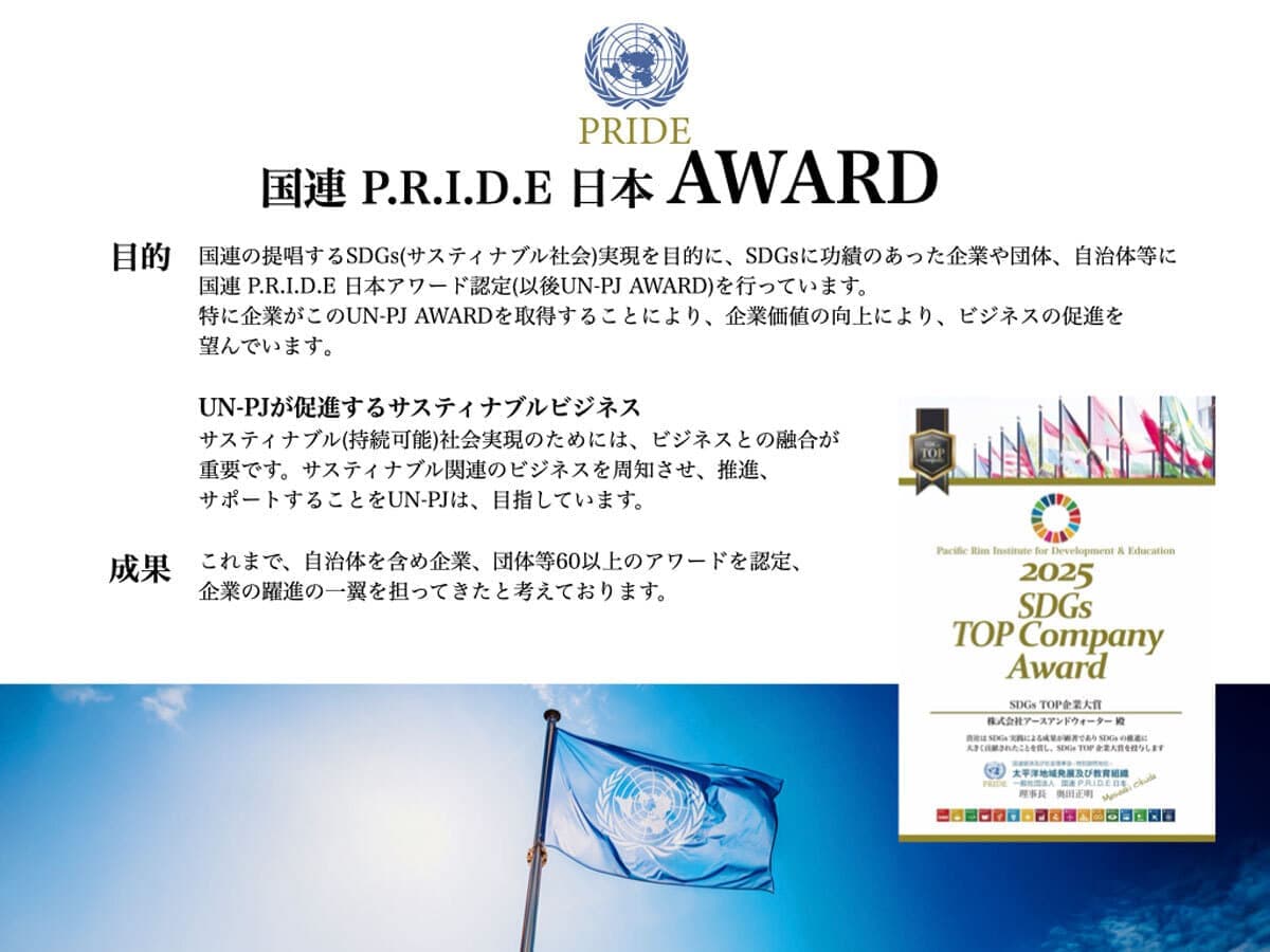 | 一般社団法人国際SDGs推進協会は、国連PRIDEよりSDGsの企画、展開、実績が認められSDGs最高賞を受賞。 |