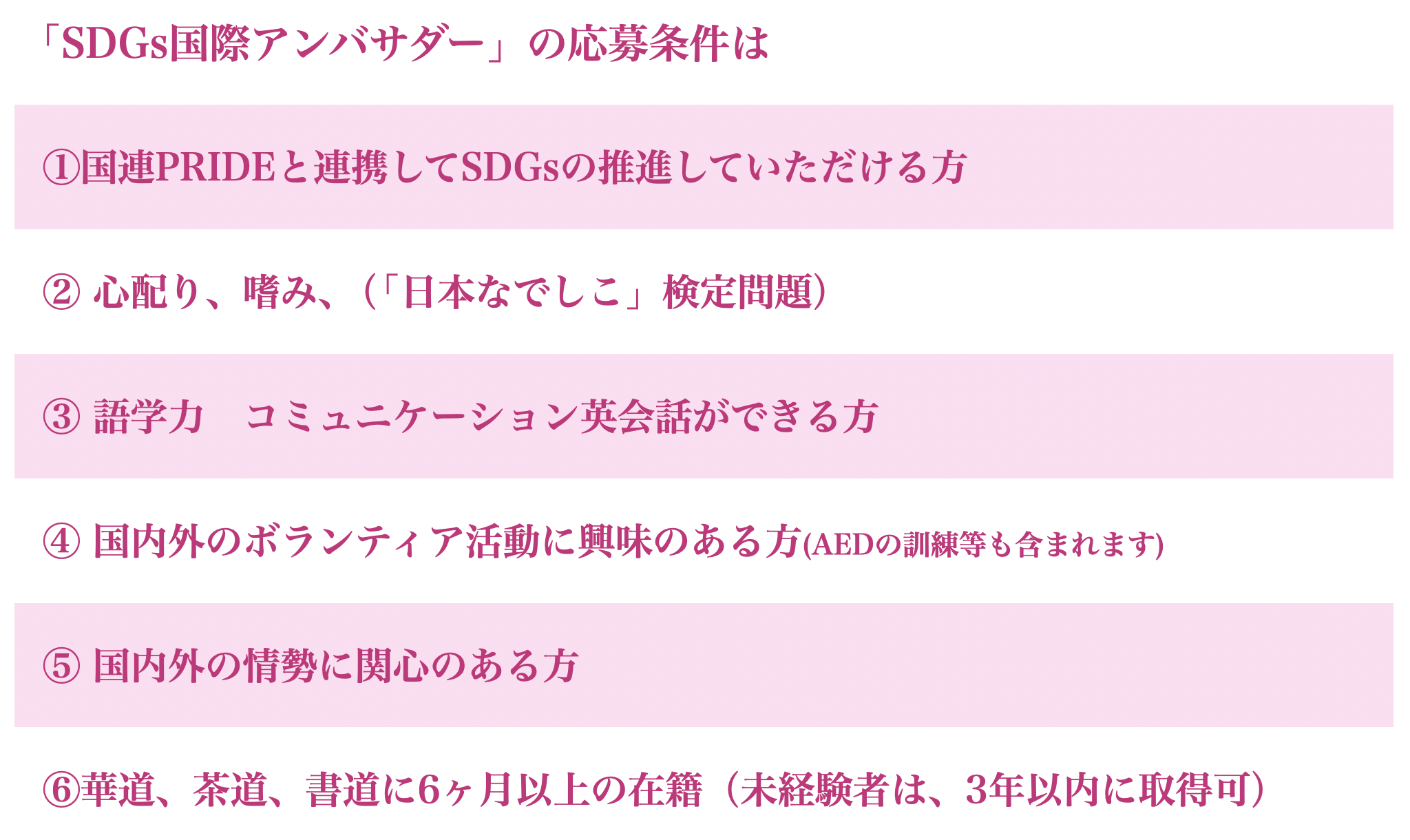SDGs国際アンバサダーは、社会貢献を目的としたアンバサダ(大使的な役割)により SDGsの普及、各国大使館・領事館と企業・自治体等のジョイント役、また、パーティや催し物等の企画、国際的な社会貢献にも取り組みます。(国連PRIDEと連携)