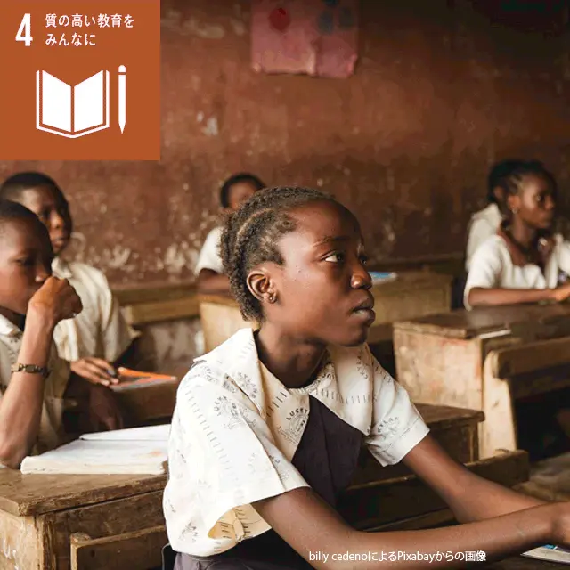 すべての人に包摂的で質の高い教育を普及させるという目標は、持続可能な開発にとって、教育が最も有効かつ効果的な手段であるということを再認識するものです。この目標は、2030年までにすべての男女が無償で初等・中等教育を修了することを目指しています。また、職業訓練の平等な機会を提供し、ジェンダーと貧富による格差を解消することで、全世界で質の高い高等教育機会を提供することも、この目標の一つの狙いです。